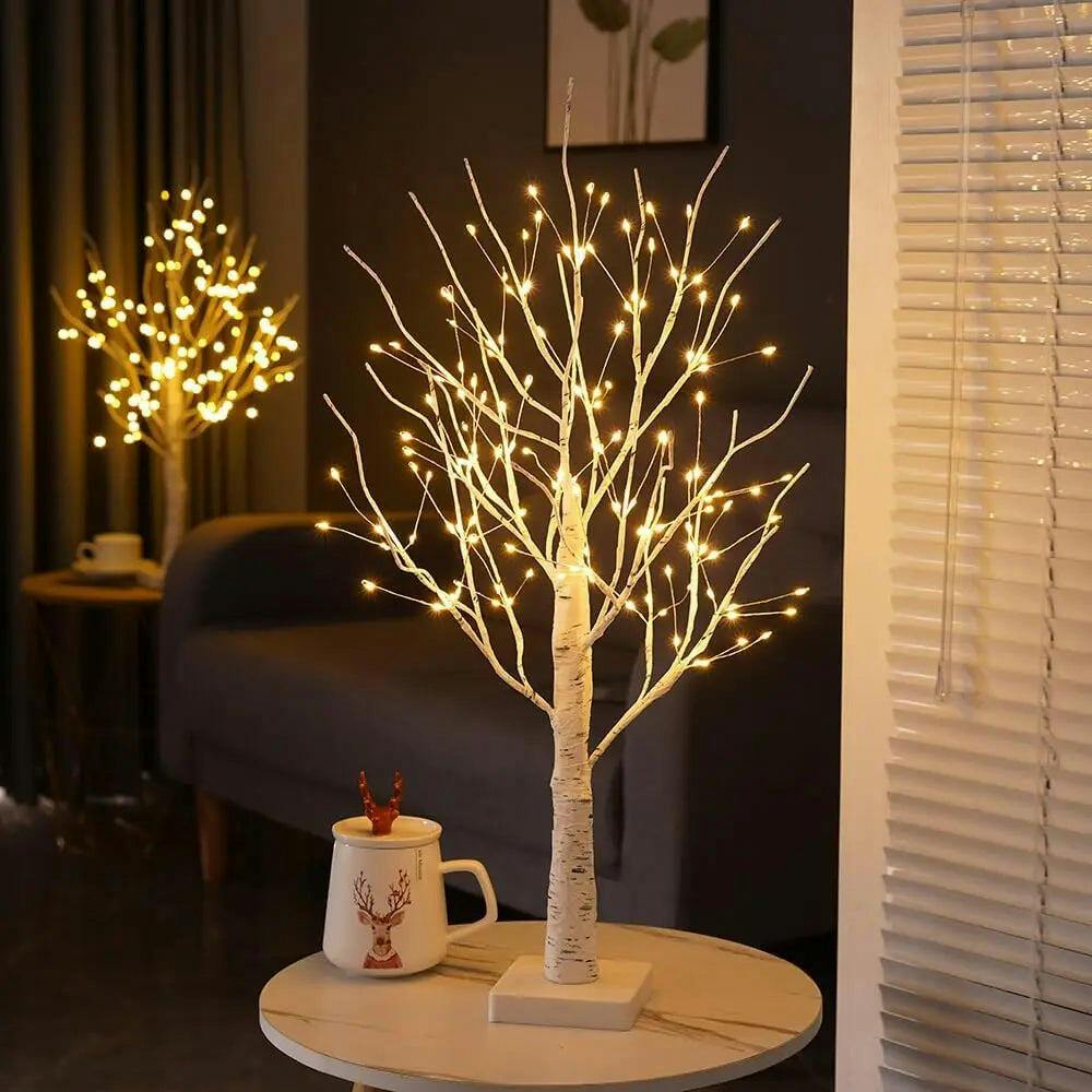 Mini Birch Twig Tree Design – Realistic branches with warm LED lights create a cozy holiday vibe.